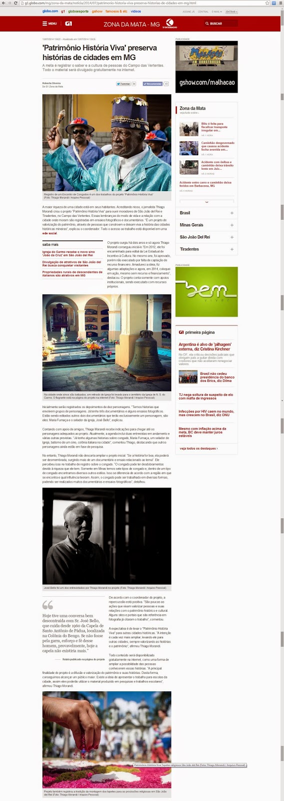 Reportagem Especial- Projeto Patrimônio História Viva / Portal Photos- Uol (2014) /